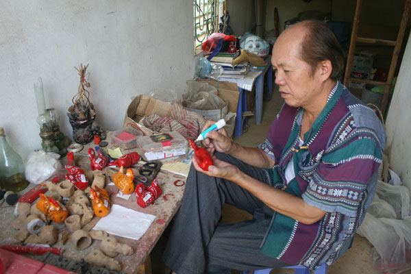 Ông Chóong dành rất nhiều thời gian cho việc chế tác gà đất |