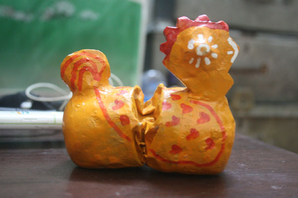 Với đôi bàn tay khéo léo của ông Chóong chú gà đất cũng có thể cất tiếng gáy |