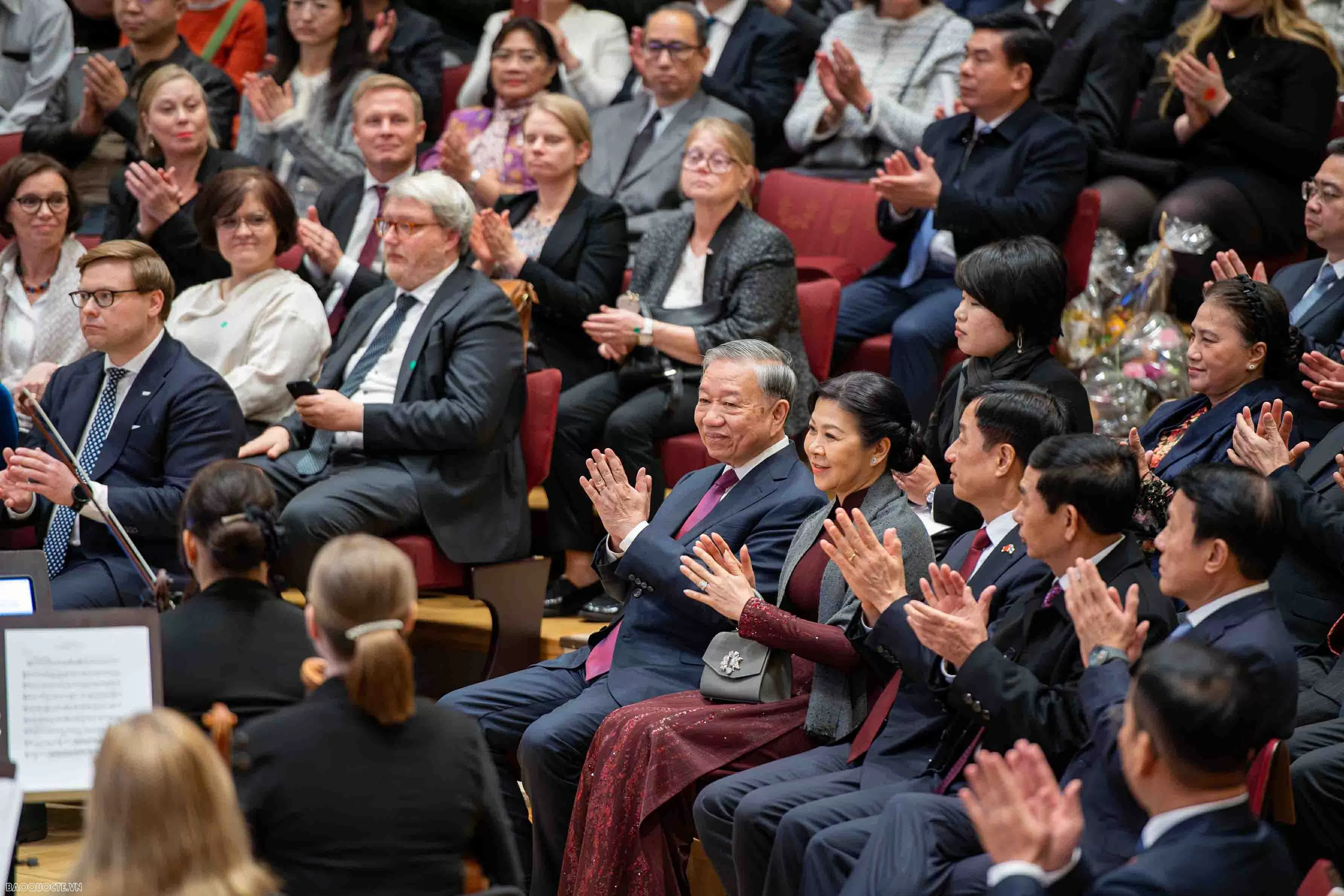 Trong khuôn khổ chuyến thăm chính thức Phần Lan của Tổng Bí thư Tô Lâm và Phu nhân cùng Đoàn đại biểu cấp cao Việt Nam, tối 21/10 (theo giờ địa phương), tại Đại học Helsinki, Đại sứ quán Việt Nam tại Phần Lan và Thành phố Helsinki (Phần Lan) phối hợp tổ chức Chương trình hòa nhạc đặc biệt.