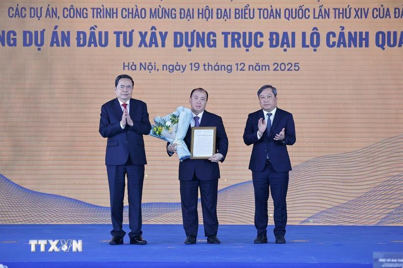 Tại buổi lễ, Chủ tịch Quốc hội Trần Thanh Mẫn trao Quyết định phê duyệt đầu tư Dự án Trục Đại lộ Cảnh quan sông Hồng cho Chủ tịch Hội đồng Quản trị Công ty cổ phần đầu tư địa ốc Đại Quang Minh - đại diện liên danh nhà đầu tư.
