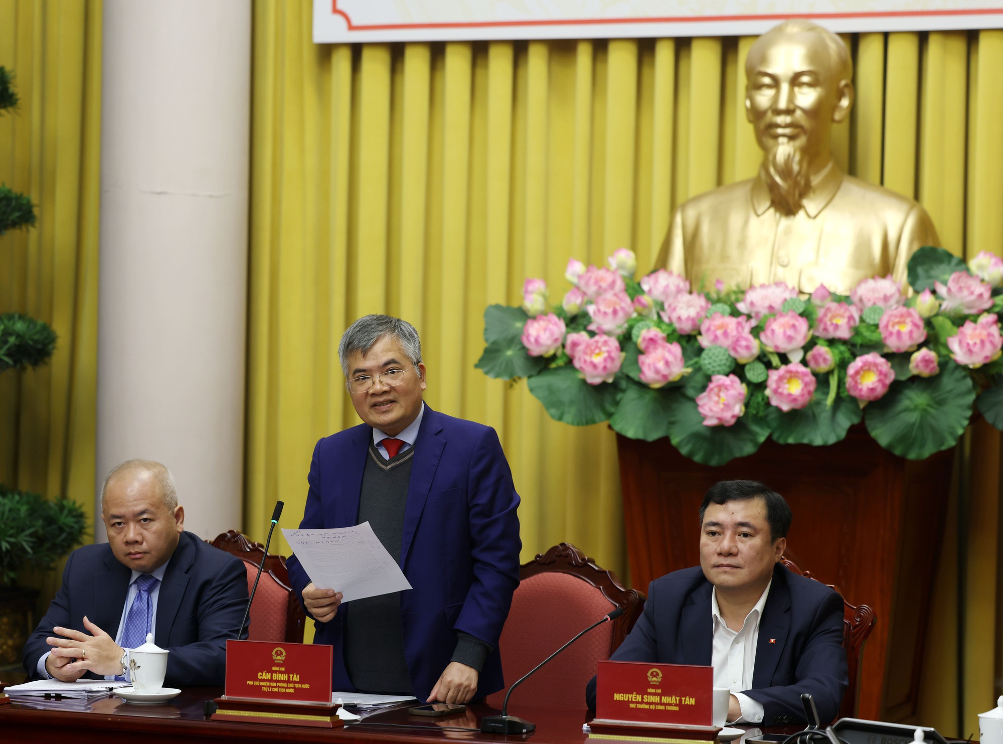 Phó Chủ nhiệm Văn phòng Chủ tịch nước, Trợ lý Chủ tịch nước Cấn Đình Tài, chủ trì Họp báo.