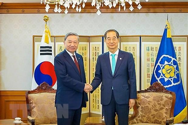 Bày tỏ hoan nghênh chuyến thăm Hàn Quốc của Bộ trưởng Tô Lâm và đoàn đại biểu cấp cao Bộ Công an Việt Nam, Thủ tướng Han Duck-soo đã đánh giá cao mối quan hệ đối tác chiến lược toàn diện vừa được nâng cấp giữa hai nước.