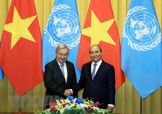 Chủ tịch nước Nguyễn Xuân Phúc và Tổng Thư ký Liên hợp quốc António Guterres.