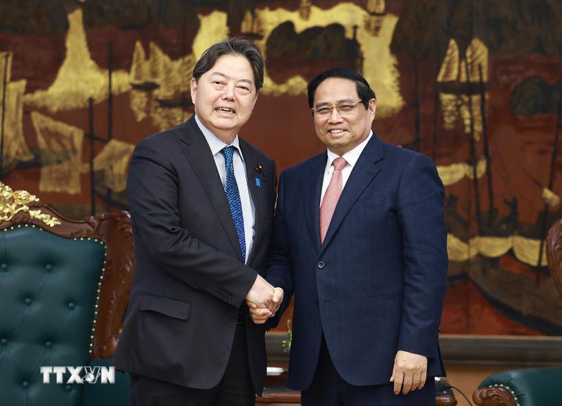 Về phần mình, Bộ trưởng Hayashi Yoshimasa cảm ơn Thủ tướng dành thời gian tiếp; bày tỏ chia sẻ với những thiệt hại nặng nề của Việt Nam do thiên tai, bão lũ thời gian qua; đánh giá cao lực lượng lao động Việt Nam tại Nhật Bản với những đóng góp tích cực cho sự phát triển, thịnh vượng của hai quốc gia.
