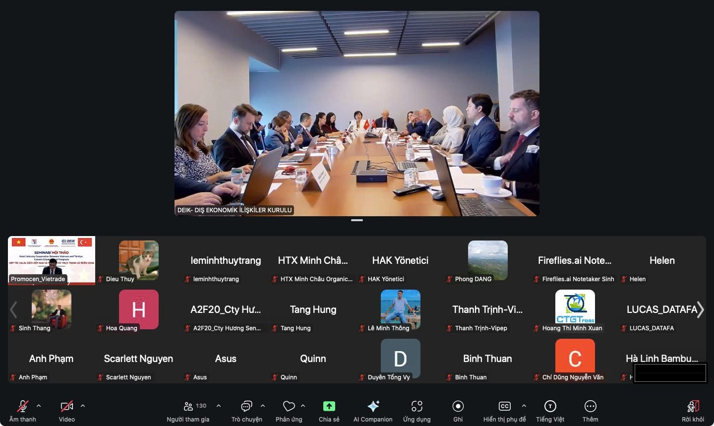 Ngày 03/10/2025, Cục Xúc tiến thương mại (Bộ Công Thương) phối hợp với Đại sứ quán Việt Nam tại Thổ Nhĩ Kỳ và Ủy ban Kinh tế đối ngoại Thổ Nhĩ Kỳ tổ chức hôi thảo trực tuyến “Hợp tác Halal giữa Việt Nam và Thổ Nhĩ Kỳ: Thực trạng và triển vọng”.