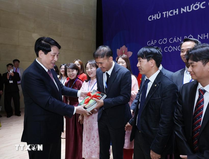 Cũng nhân dịp này, Chủ tịch nước Lương Cường tặng quà sách tiếng Việt cho cộng đồng người Việt ở Đông Nam Hàn Quốc, gửi tới bà con thông điệp về việc gìn giữ và lưu truyền cho con cháu những giá trị đẹp đẽ của tiếng mẹ đẻ và văn hóa Việt Nam - sợi dây gắn kết với cội nguồn dân tộc./.