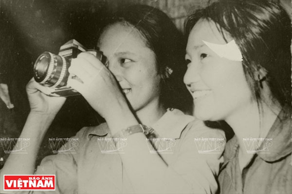 Chiến sỹ Mai Thị Tuyết (người cầm máy ảnh) tại Đại hội Quyết thắng Quân khu 3, năm 1967. Ảnh: Tư liệu |
