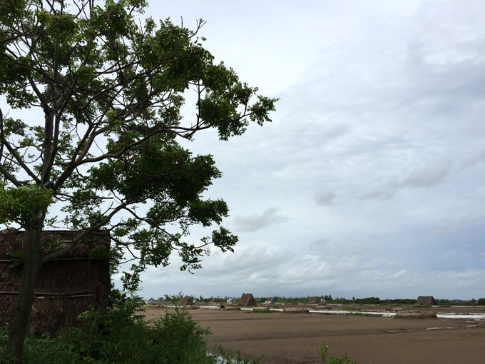 Ấn tượng của đồng muối là những căn nhà chòi hình tam giác lợp mái rơm chi chít đồng, tò mò nhìn qua lỗ khóa thì ra là kho để diêm dân trữ nông cụ hoặc trữ muối.