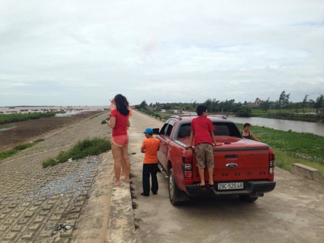 Chúng tôi cho xe chạy chầm chậm trên con đường đê bao ven biển, hít thở không gian mặn mòi và ngai ngái sóng gió. Biển không xanh biếc và nắng cũng không đổ vàng trên rặng phi lao như những vịnh biển du lịch nổi tiếng.