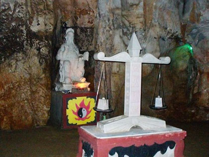 Động có 12 cửa ngục, mỗi cửa là một vị quan cai quản. Men theo lối đi nhỏ hẹp là tiếng gió thổi âm u trong lòng động sâu hun hút. Trong lòng động xuất hiện các khung cảnh tái hiện truyền thuyết về âm phủ như tượng "đầu trâu mặt ngựa" đang tùng xẻo người có tội, suối Giải Oan để gột rửa oan ức, cân Công Lý để cân nhắc công và tội con người... Nhiều hình phạt khủng khiếp với người mang tội khibị đày xuống Địa Ngục được mô phỏng rõ nét như nấu dầu, ngồi bàn chông, bị trói vào cột đồng châm lửa đốt…