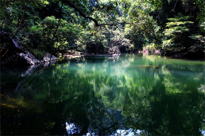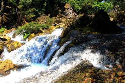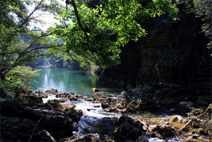 Những con suối chảy róc rách ôm sát những dãy núi đá vôi cao vút. Những vực nước sâu xanh thẳm như biển. Những con thác chảy ầm ào tung bọt trắng xóa rồi luồn lách đầy bí ẩn qua núi đá hùng vĩ giữa đại ngàn Trường Sơn như một lời mời gọi mọi người đến thưởng ngoạn vào những ngày hè oi bức.