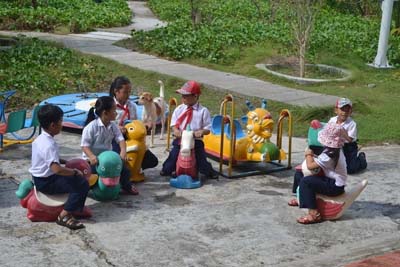 Ngoài giờ lên lớp, các em cùng nhau vui chơi dưới tán cây phong ba |