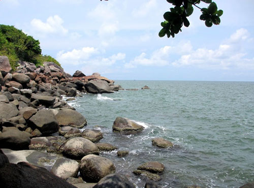 Sau 1 giờ hải hành, tàu cập cảng. Từ bến đến trung tâm huyện chỉ chừng 1 km. Du khách có thể thuê một chiếc xe máy với giá 100.000 đồng/ngày (chủ bao xăng) để khám phá Hòn Tre. Đi theo con đường cắt ngang Hòn Tre non 1 km, đến cuối đường giáp biển, rẽ trái thêm 1 km sẽ đến Bãi Chén. Đây là một bờ biển lô nhô những khối đá hình bát úp nên dân gian đặt tên là Bãi Chén, xen kẽ là những bãi cát nhỏ hoang sơ. Tắm xong lên bờ, mua cá, tôm, cua, ghẹ của ngư dân nhờ chủ quán nướng giùm, uống vài ly bia giữa cảnh biển trời hoang sơ, bạn sẽ thấy vô cùng thú vị.