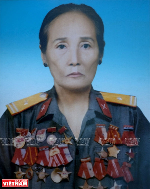 Chân dung bà Trần Thị Quang Mẫn trong bộ quân phục và những huân, huy hiệu được phong tặng. Ảnh: Tư liệu |