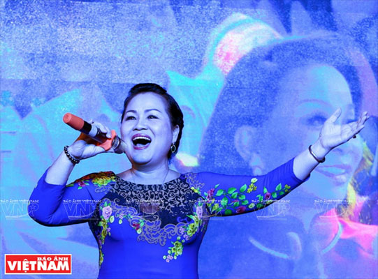 Với mong muốn mang tiếng hát phục vụ khán thính giả, NSƯT Quỳnh Liên đã phục vụ ở hầu hết mọi miền tổ quốc, biên cương, hải đảo và cả nước ngoài. Ảnh: Đặng Kim Phương |