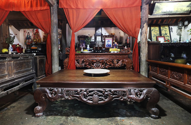 Bộ bàn ghế, tủ, đồ thờ... trong nhà có hàng trăm năm tuổi. |
