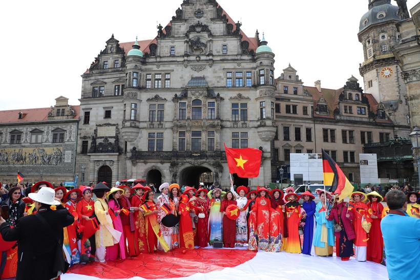 Tại thành phố Dresden – nơi được mệnh danh là “Florence bên bờ sông Elbe”, màn diễu hành áo dài rực rỡ sắc màu đã trở thành điểm nhấn đặc biệt trong chuỗi hoạt động của Liên hiệp Hội Phụ nữ Việt Nam tại Cộng hòa Liên bang Đức nhân kỷ niệm 50 năm thiết lập quan hệ ngoại giao Việt-Đức (1975–2025), 95 năm Ngày Phụ nữ Việt Nam, sinh nhật 2 năm của Liên hiệp hội và ra mắt Câu lạc bộ Di sản Áo dài.