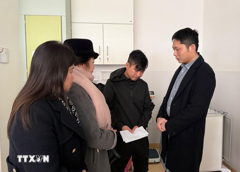 Ngày 14/2, ông Vũ Sơn Tùng, Tham tán Đại sứ quán Việt Nam tại Cộng hòa Liên bang Đức, và ông Đồng Thanh Bình, Ủy viên Ban chấp hành Liên hiệp hội người Việt Nam tại Cộng hòa Liên bang Đức (LHH), cùng một số cán bộ Đại sứ quán và đại diện LHH đã đến Bệnh viện Friedrichshain ở quận Prenzlauer Berg, Berlin, để thăm hỏi, chia buồn và động viên gia đình anh Nguyễn Hồng K., sinh năm 1987, quê Nghệ An, không may gặp nạn trong vụ hỏa hoạn nghiêm trọng xảy ra tại một chung cư ở phố Dolgenseestr., quận Lichtenberg, tối 11/2 vừa qua.