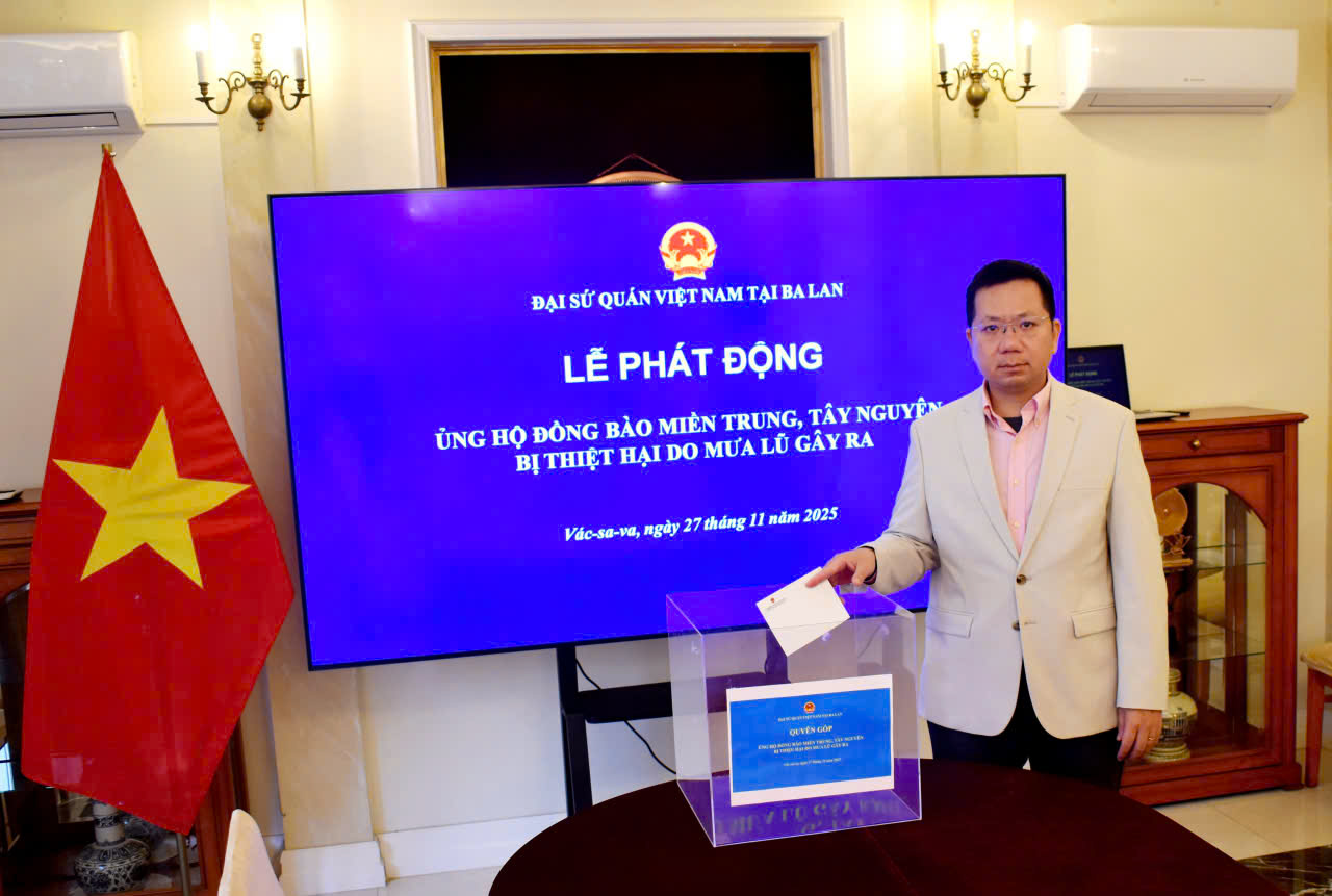 Chiều ngày 27/11, tại trụ sở Đại sứ quán Việt Nam tại Ba Lan, cán bộ, nhân viên Đại sứ quán đã tổ chức, tham gia lễ phát động ủng hộ đồng bào miền Trung, Tây Nguyên chịu thiệt hại do mưa lũ liên tiếp vừa qua.