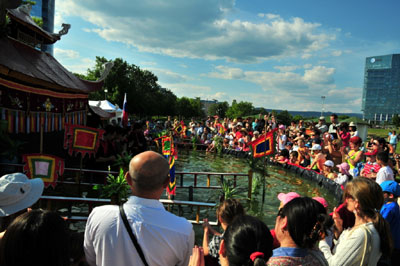 Giữa thiên nhiên thơ mộng của công viên Kuchajda, khán giả Slovakia, bà con Việt kiều và bạn bè quốc tế đặc biệt là các cháu thiếu nhi được chiêm ngưỡng một loại hình nghệ thuật dân gian độc đáo của Việt Nam trên một nền nhạc cổ truyền cuốn hút người nghe.