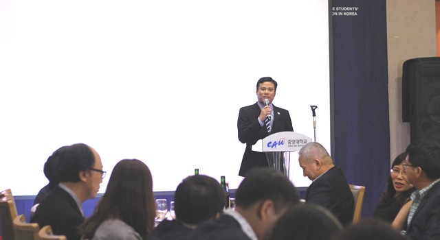 Anh Phạm Hải Chiến, Chủ tịch Hội Sinh viên Việt Nam tại Hàn Quốc, phát biểu tại lễ Kỷ niệm |