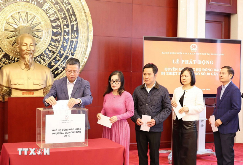 Hưởng ứng lời kêu gọi của Ủy ban Trung ương Mặt trận Tổ quốc Việt Nam, từ đầu tháng 10/2025, Đại sứ quán Việt Nam tại Trung Quốc đã phát động đợt quyên góp trong toàn thể cán bộ, nhân viên cơ quan đại diện và cộng đồng người Việt Nam đang sinh sống, học tập và làm việc tại Trung Quốc, nhằm góp phần hỗ trợ đồng bào trong nước khắc phục hậu quả bão lũ nghiêm trọng xảy ra tại khu vực Bắc Bộ và Bắc Trung Bộ.