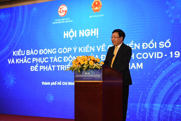 Phát biểu tại Hội nghị chiều nay, Phó Thủ tướng, Bộ trưởng Ngoại giao Phạm Bình Minh khẳng định, Hội nghị thể hiện quyết tâm mạnh mẽ, tinh thần khẩn trương và quyết liệt của Thành phố Hồ Chí Minh, Bộ Ngoại giao, và kiều bào đóng góp vào việc thực hiện hiệu quả Nghị quyết Đại hội Đảng bộ Thành phố Hồ Chí Minh lần thứ XI, cũng như những chủ trương, đường lối phát triển đất nước trong giai đoạn mới sẽ được thông qua tại Đại hội Đảng lần thứ XIII tới đây.