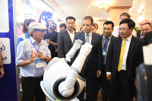 Phó Thủ tướng và Lãnh đạo thành phố Hồ Chí Minh thăm gian hàng giới thiệu sản phẩm công nghệ cao của doanh nghiệp kiều bào tại Hội nghị |