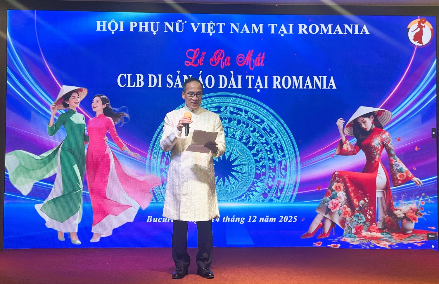 Ngày 14/12/2025, tại thủ đô Bucharest - Rumani, Hội Phụ nữ Việt Nam tại Rumani, với sự bảo trợ của Đại sứ quán Việt Nam tại Rumani, đã tổ chức ra mắt Câu lạc bộ Di sản Áo dài Việt Nam (CLBDSADVN) tại Rumani.
