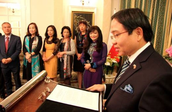 Đại sứ Vũ Đăng Dũng phát biểu tại buổi gặp gỡ. Nguồn: ĐSQ |