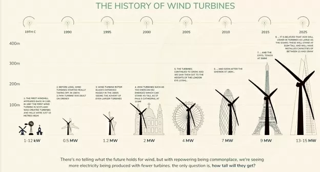 Có thể lấy tháng 12/1993 làm khởi điểm, khi khái niệm "điện gió" hay "tuabin gió" còn xa lạ với số đông, chỉ lác đác xuất hiện trên báo chí. Đến khoảng năm 2008, những hệ thống cánh quạt gió công suất tính bằng MW đầu tiên được đưa về Việt Nam.