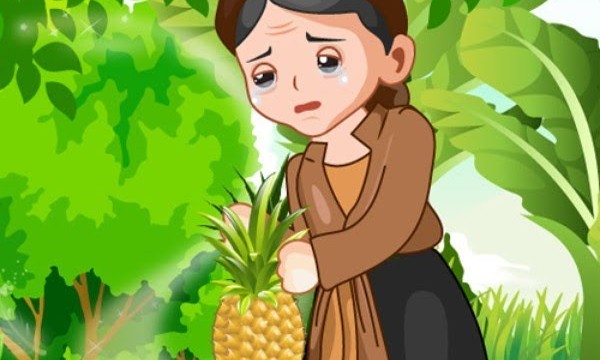 Ngay sau đó trong trái phát ra tiếng khóc. Trái từ màu xanh thấm nước mắt của người mẹ liền chuyển vàng. Ngày ấy, người ta hay gọi là trái Huyền Nương nay gọi là trái thơm. Và từ đó người ta hay nói về truyện sự tích quả dứa hay còn gọi là sự tích trái dứa.