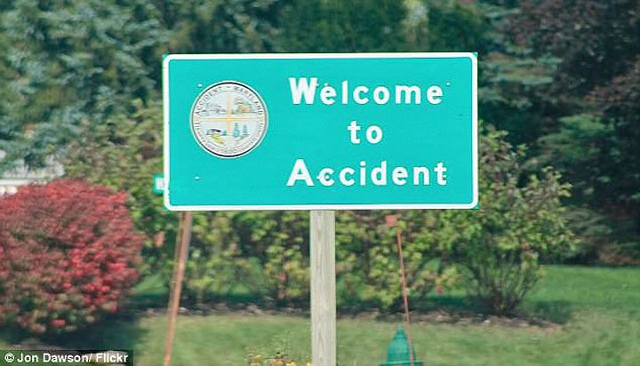 Là một thị trấn nhỏ nằm ở bang Maryland, Mỹ, Accident có khoảng 300 hộ dân sinh sống. Tên của thị trấn này có nghĩa là "Tai nạn" nhưng không ai biết rõ về nguồn gốc cái tên này. |