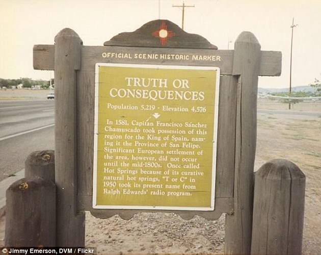 Truth or Consequence (Sự thật hay hậu quả) là tên một thị trấn nhỏ thuộc New Mexico với dân số khoảng 8.000 người. Viết tắt là "T Or C", tên thị trấn này bắt nguồn từ một chương trình radio đầu tiên xuất hiện tại đây. |