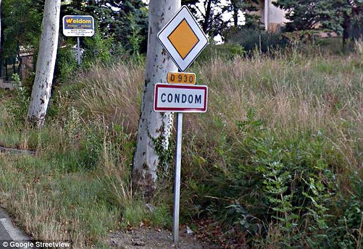 Nằm ở miền Nam nước Pháp, thị trấn Condom (bao cao su) khiến nhiều người buồn cười khi nhìn thấy tên. Theo người dân địa phương, nguồn gốc tên gọi này xuất phát từ từ Condatomagus (nơi một nhánh sông chảy vào sông cái). |