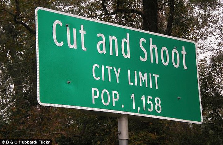 Thị trấn nhỏ "Cut and Shoot" (Cắt và bắn) nằm ở bang Texas, Mỹ. Nguồn gốc của tên gọi này được người dân lý giải rằng: Vào năm 1912, ở thị trấn này xảy ra một cuộc cãi vã vô cùng căng thẳng và suýt chút nữa dẫn đến bạo lực. |