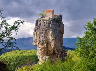Ngôi nhà này nằm trên một cột đá cao 40m ở miền trung Georgia và trông nó giống một chiếc gậy khổng lồ. Vào thế kỷ thứ 4, Georgia đã chọn đạo Cơ-đốc làm quốc giáo và Katskhi Pillar trở thành nhà thờ đầu tiên vào thế kỷ 7. Một tu sĩ Georgia đã sống ở đây khoảng 20 năm và phụ nữ không được phép trèo lên nhà thờ này.