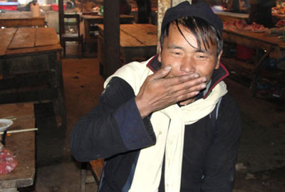 Tôi giơ máy ảnh ra chụp, anh chàng người Mông này lấy tay che mặt, bảo: “Cho ta 5 ngàn, thì ta cho chụp ảnh”. Tôi đưa cho Linh 5 ngàn. Tức thì, anh ta lại bảo: “5 ngàn chỉ chụp một cái thôi. Cho ta 10 ngàn thì chụp ảnh thoải mái”. Không ngờ, anh chàng này đã ngất ngư như thế mà vẫn biết đòi tiền công “làm mẫu”.