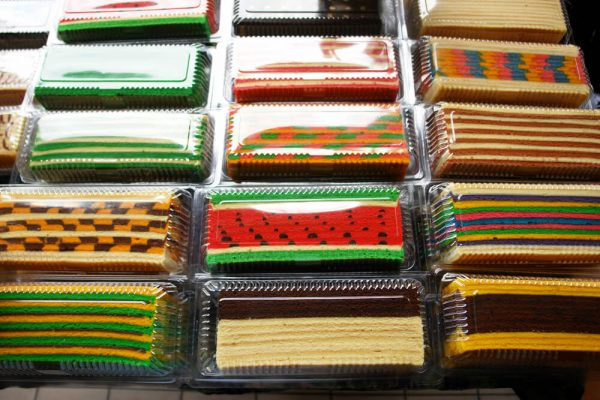 Trong khi lớp ngoài cùng của bánh có màu rất đơn giản (nâu hoặc be) thì khi cắt miếng bánh, bạn sẽ như được đi vào thế giới của kính vạn hoa với vô vàn màu sắc được sắp xếp rất tinh tế. Nó cho thấy người làm ra những chiếc bánh này phải có một óc logic và một trí tưởng tượng rất phong phú cùng sự khéo léo và kiên nhẫn vô cùng.