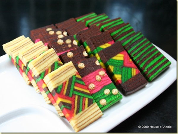 Về cơ bản, nó là một phiên bản phức tạp hơn nhiều so với loại bánh Kek Lapis Betawi (bánh ngàn lớp Betawi) của người Indonesia, và được người dân bang Sarawakia nâng lên thành một nghệ thuật với độ phức tạp và màu sắc phong phú hơn nhiều từ các màu tự nhiên.
