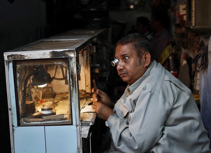 Trong con hẻm nhỏ ở khu phố cổ Delhi, một người đàn ông đang đeo kính lúp để sửa đồng hồ đeo tay. Trong thời đại kỹ thuật số, những người thợ dày dặn kinh nghiệm đang dần lạc hậu với công nghệ và những cửa tiệm nhỏ như của ông đã lỗi thời. |