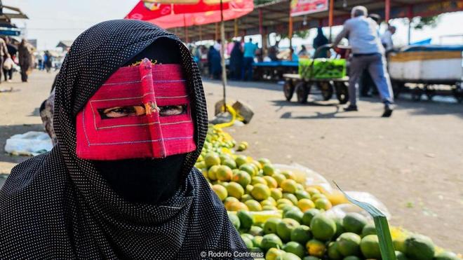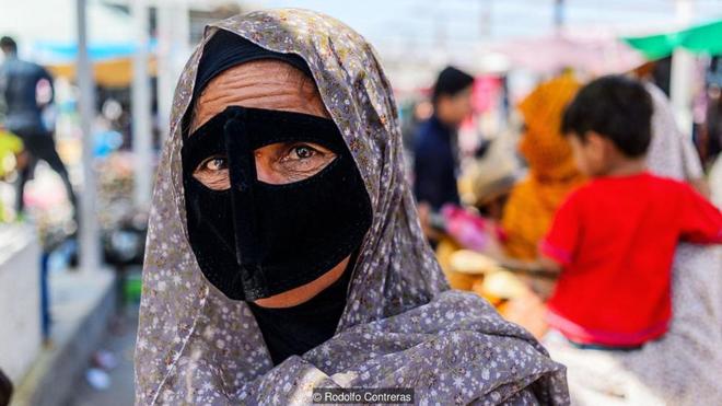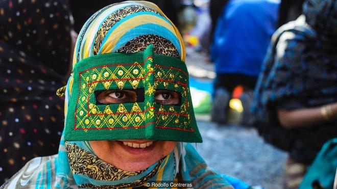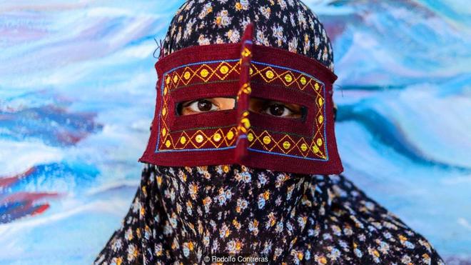 Truyền thống khắc nghiệt, bảo thủ: Tuy các cô gái trẻ không thường xuyên đeo mặt nạ, khi phóng viên Rodolfo Contreras yêu cầu chụp ảnh không mặt nạ thì họ từ chối. Trong nền văn hóa mang tính bảo thủ này, phụ nữ không được nói chuyện với người lạ, đặc biệt là nam giới, và làm thế mà không đeo mặt nạ lại càng không phù hợp. |