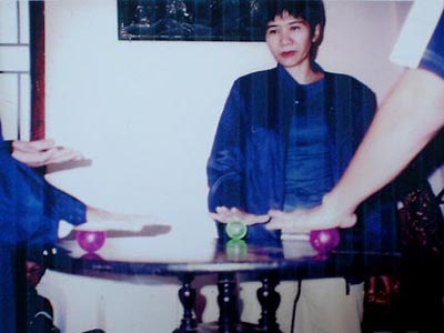 Cuộc thí nghiệm lần ba, ông Khanh đưa cho mỗi người tham gia thí nghiệm một quả cầu mà ông mang theo từ trước, cỡ xấp xỉ bằng quả bóng bàn. Lần thí nghiệm này mọi người không đặt tay trực tiếp lên mặt bàn mà đặt tay thông qua quả cầu trên mặt bàn.
