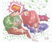 Lại nhớ mấy hôm trước Tết, Hương gặp tôi còn nhắc sang nhà chơi, nhưng mải mê việc này việc khác, mãi tới ngày mừng năm tôi mới đến được, thì Hương lại đi chơi huyện. Nghe mọi người nói, hôm ấy Hương chơi đu với thằng Tân bổng lắm. Ai cũng khen, tôi lấy làm giận nên chẳng thèm gặp lại. Rồi, bỗng dưng hôm đi nhổ mạ, tôi có nghe người nói, suốt ngày Hương nhắc đến tôi và còn trách tôi là người vô tâm. Thế rồi, tôi nguôi giận nhưng vẫn không làm sao bước chân đến nhà Hương được. Ấy thế mà hôm nay được gặp lại trong ván cờ người này, lòng tôi cứ xao xuyến, hết nhìn trời lại nhìn Hương. Tôi cứ ớ người ra khi có tiếng trống thôi thúc và tiếng hét như lệnh vỡ. Người cầm quân bước đến nhắc cây cờ tôi mới luống cuống chạy theo suýt vấp vào chính chân mình. Hương phì cười đứng dậy nhưng vẫn dùng dằng chưa đi, bởi lẽ đây là nước cờ ăn đôi của con “Mã” là tôi. Ăn con “Tốt”, đồng thời đuổi con “Pháo” đỏ, đang chờ thời cơ chiếu tướng. Hương ngước nhìn rồi cúi mặt nói khẽ với tôi rằng chiều sẽ chờ tôi ở quán Nghinh đầu làng như mọi khi. Tôi hùng dũng ngạo nghễ ngồi lại chiếc ghế mà Hương vừa đứng dậy. Ván ấy quân đen thắng tôi được thưởng một cây bút bi và bao thuốc lá.