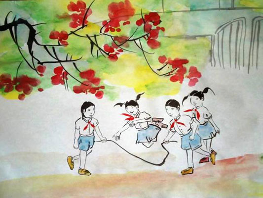 Tiếng ve và phượng thắm sân trường mãi gắn liền với niềm vui tuổi thơ (Tranh: Minh Hoàng, Báo Dân trí) |