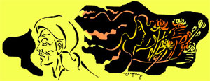 Chợt cô gái bận đồ trắng như tiên sa hiện lên giữa vạt cúc vàng, cô tung tăng nhảy nhót, gió thổi hai vạt áo mỏng cánh chuồn rập rờn bay lên, đậu xuống những đám hoa đung đưa. Cô là ong, là bướm, là chim.